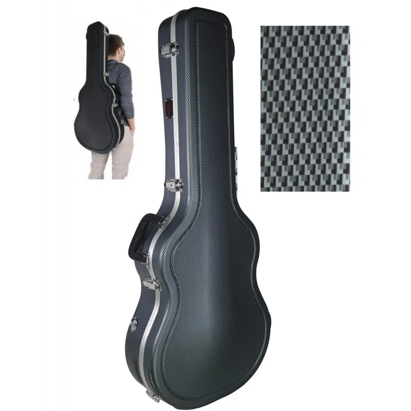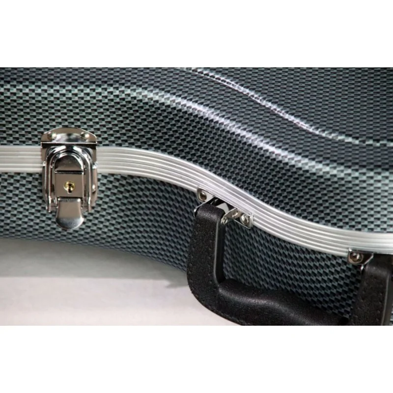 Super-durable classical guitar case made of ABS material with a new guitar-shaped design. Includes a set of two straps with hooks for hanging it over your shoulders.