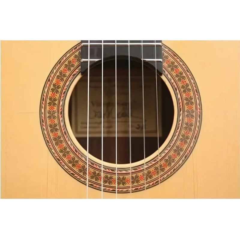 Semi-professional black flamenco guitar with that subtle twang characteristic of an authentic flamenco guitar. It has very good and surprising sound characteristics with bright highs and deep bass.
