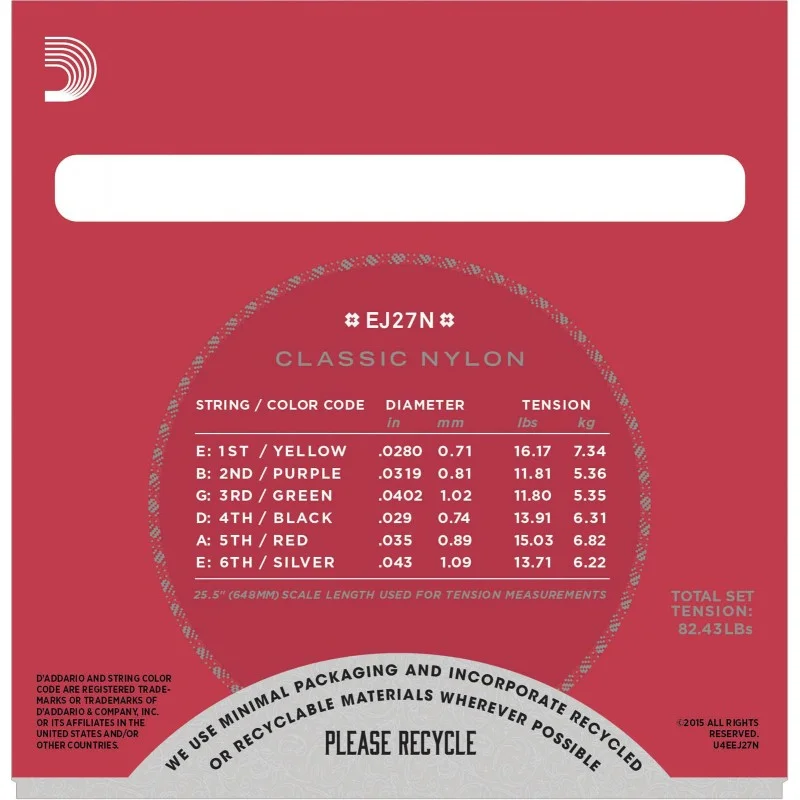 Las cuerdas de guitarra de nylon D’Addario EJ27N Classic son adecuadas para principiantes, estudiantes y profesionales. Este juego de tensión normal contiene 3 cuerdas de nylon agudas y 3 cuerdas de bajo de cobre plateado para un equilibrio óptimo de calor, proyección y vida útil.