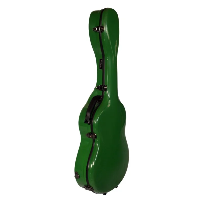 Estuche TOP Alta Gama para Guitarra Clásica o Flamenca ultraresistente fabricado en Fibra de Vidrio. Interior Premium. Incluye juego de dos correas acolchadas con enganches para colgarlo de los hombros y bolso para guardarlas. Cierre hermético de goma.