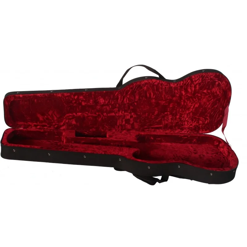 Estuche para Bajo de la marca Cibeles, con interior de Foam de alta ligereza y forro rojo que protege de golpes y de cambios térmicos bruscos, dada la naturaleza rígida, ligera y aislante de dicho material.