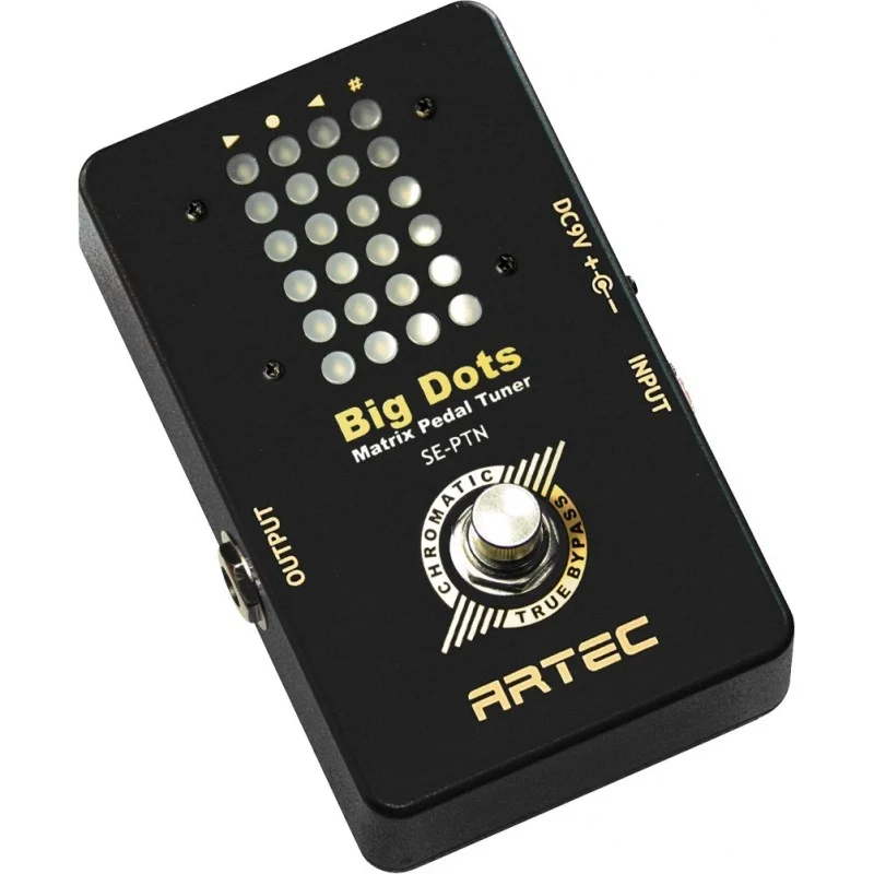 El SE-PTN está especialmente diseñado para la afinación en el escenario. No tiene pérdida de sonido por True-Bypass, y cuando se sintoniza, bloquea el ruido perfectamente con la salida de baja impedancia Mute. El guitarrista puede leer la pantalla muy fácilmente con la matriz de puntos de gran tamaño. La nota fluye a la izquierda y a la derecha, por lo que es muy fácil reconocer la afinación. No hay pérdida de batería cuando se hace un bypass.
