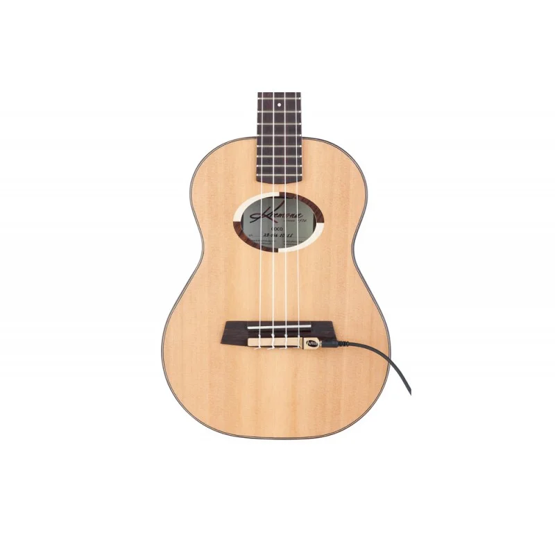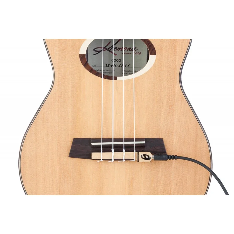 UK-1 hace que sea sencillo reproducir el sonido auténtico de su uke sin modificaciones. Simplemente deslice el UK-1 en el bloque de amarre y vuelva a apretar las cuerdas. El UK-1 encaja con la mayoría de los ukeleles de soprano, concierto, tenor y barítono con un bloque de corbata. Este sistema piezoeléctrico pasivo está diseñado para funcionar a la perfección con su amplificador acústico favorito o coloreado a través del preamplificador de su preferencia. Cable de 1/8″ a 1/4″ incluido.